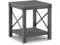 GRAYISH BROWN WOODGRAIN LAMINATE: With a metal crossbuck design, it can accent the decor of your indoor living spaces and this charming pedestal can be a good place to put a printer or small speaker