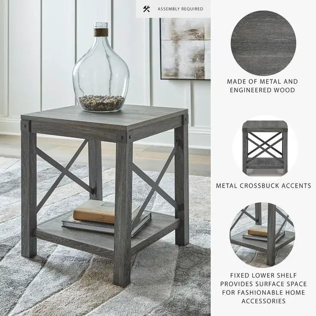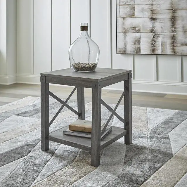 SMALL END TABLE: This compact, square piece with a wood look is a great fit next to a sofa in a living room with a lamp on it or in a bedroom as a bedside night stand or even an entryway under a plant