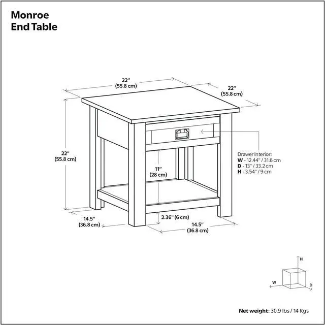 DIMENSIONS: 22" D x 22" W x 22" H