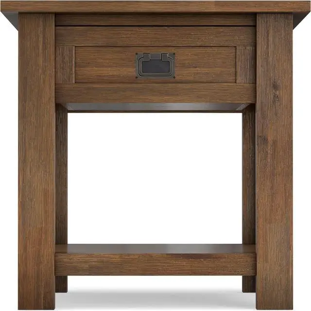 Hand-finished with a Rustic Natural Aged Brown stain and a protective NC lacquer coating to accentuate and highlight the grain and the uniqueness of each piece of furniture