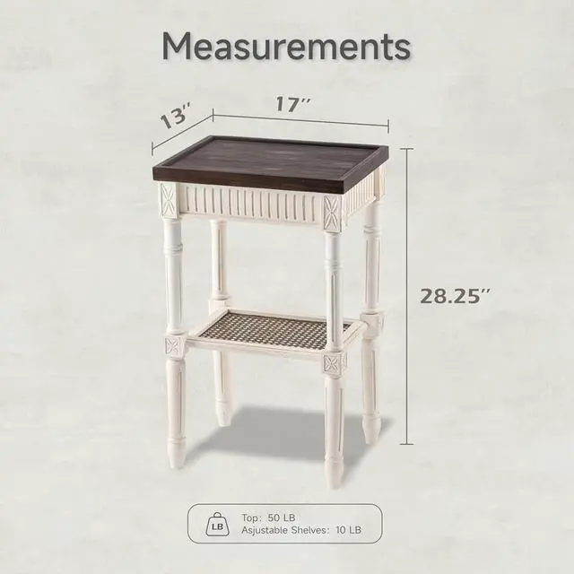 DESIGNER STYLE: Whether flanked on either side of your sofa, or placed next to an accent chair in the living room, this french country distressed end table is your trusty sidekick with the low-key silhouette and rich detailed features.