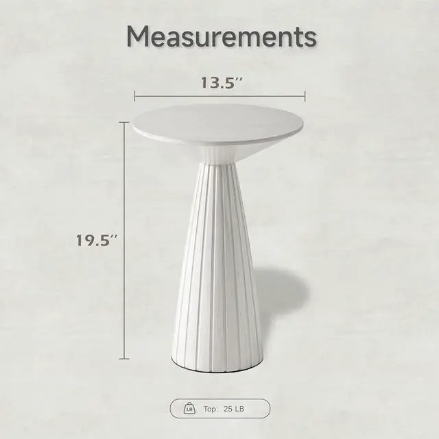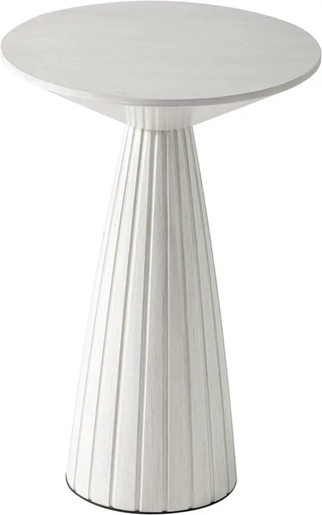 Stylish yet MinimalistThis pedestal end table is featured with a textured finish, which add visual appeal to your personal space. Round wood top set on pedestal tapered base makes the wood end table more prominent in the classic style. Perfect for any of your seasonal themed displays, it complements natural interior colors and classic themed spaces.