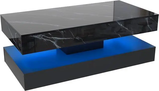Large Coffee Table: Our LED coffee table is designed with a 2-tier appearance and features a classic and beautiful marble finish, which adds lots of beauty. Simple lines design connect multiple corners to create a simple and generous style, which is very suitable for living rooms, offices, apartments, etc.