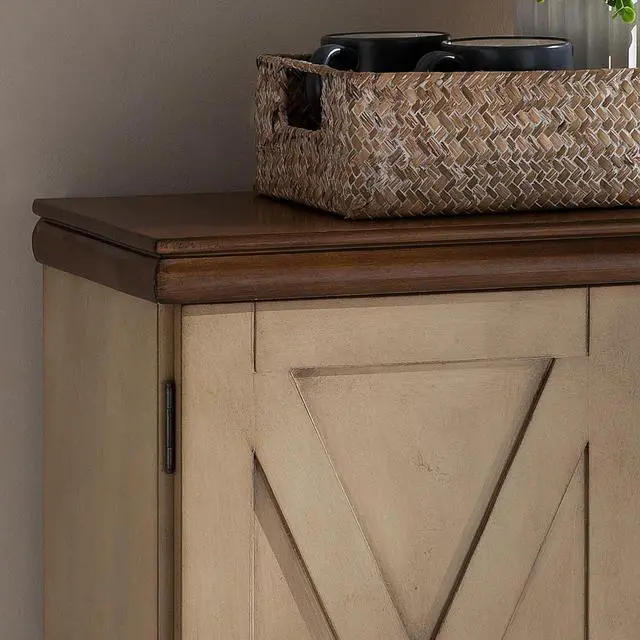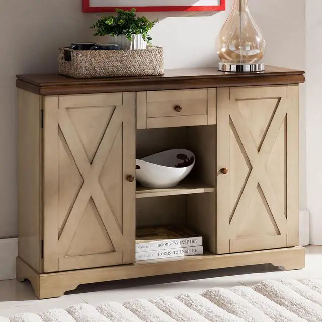 Kings Brand Furniture - Antique white/ walnut Finish wood buffet cabinet console table.