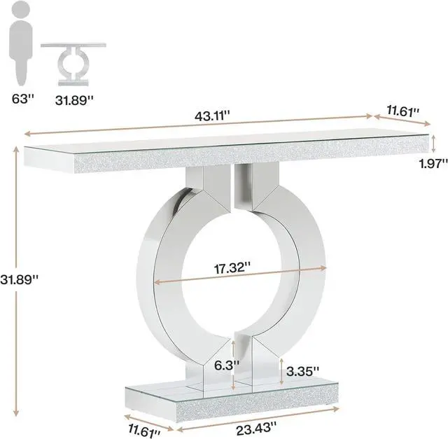 Contemporary Mirror Design: Our console table shines with a pristine mirrored finish and a unique O-shaped base, infusing an immediate dash of modern elegance into any space. Its design not only augments brightness and feeling of expansiveness, but also complements various décor styles, right from minimalist to lavish. The gleaming acrylic diamond veneer on its surfaces further raises its alluring appeal. (The console table mirrors include surfaces made of glass and surfaces made of acrylic material. )