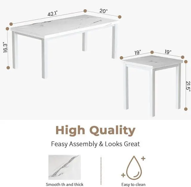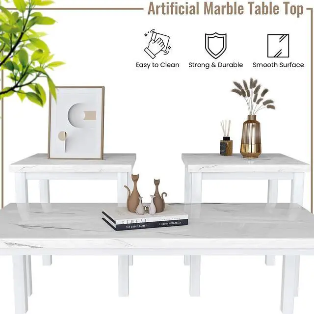MARBLE COFFEE TABLE SET: 3-piece marble coffee table in traditional retro style features an exquisite marble table top. coffee table the table top is perfect for enjoying coffee, tea and snacks. on the marble table, you can place some personal items on it, such as books, potted plants and laptops.