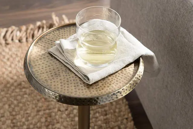 • QUALITY MATERIAL: This pedestal table was crafted out of a robust iron material complete with an antique brass finish that gives it a more traditional look