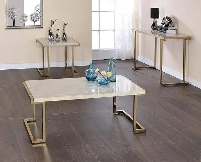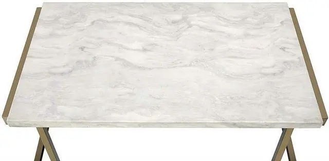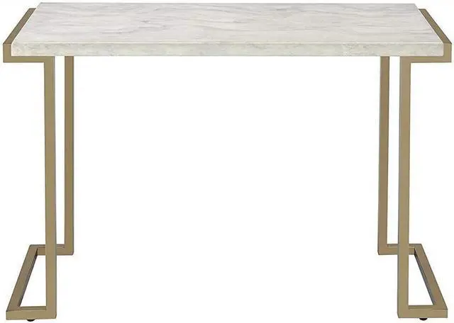 Acme Boice II Rectangular Faux Marble Top Console Table in Champagne Beige