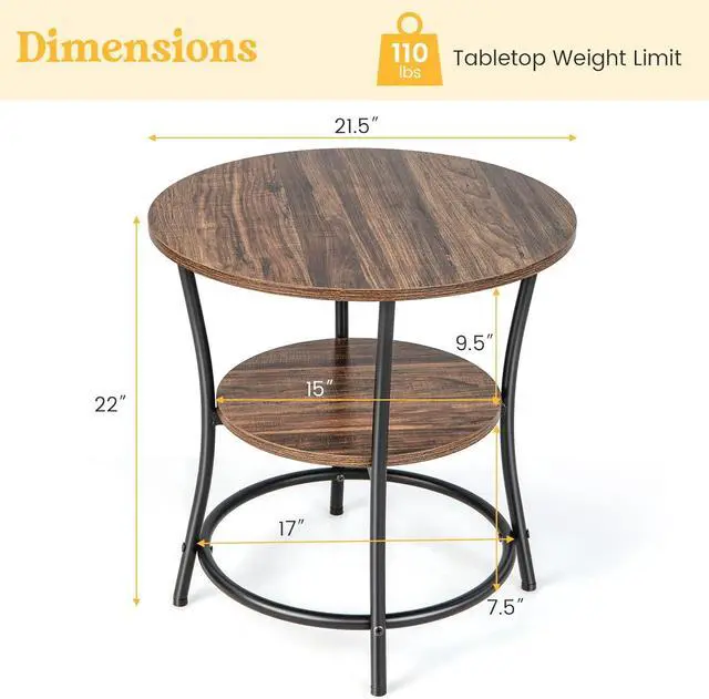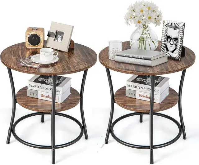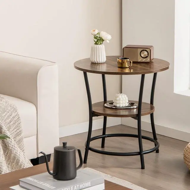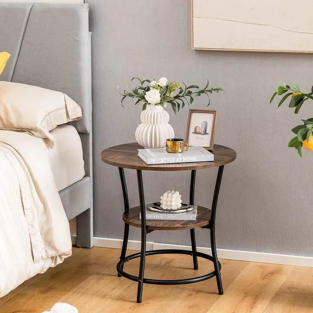 Storage]: The round end table consists of a round tabletop and an extra open storage shelf, which complements to the display and storage space. With this 2-tier end table aside your bed or sofa, you can always reach to want you want, such as the cups, magazines or remotes.