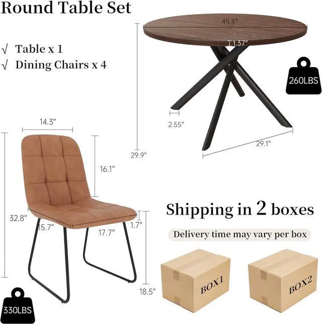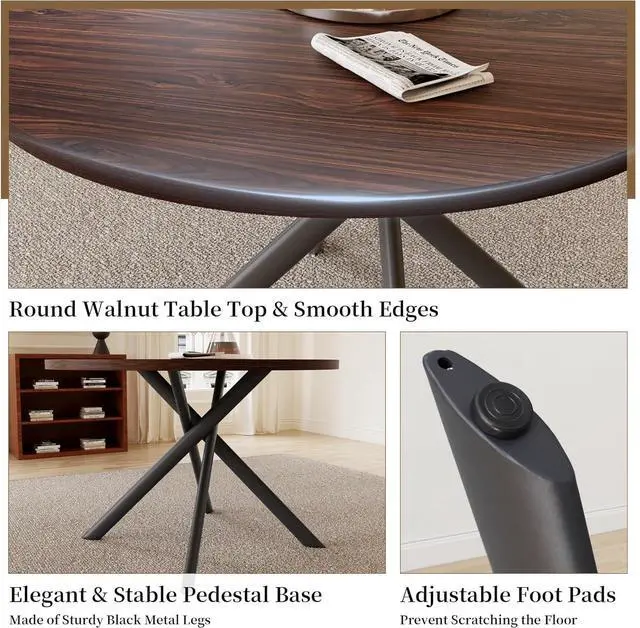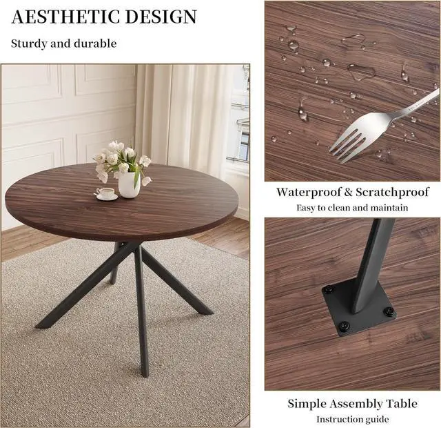Durable Construction: The round table is crafted from thick MDF material with a sturdy X-shaped carbon steel base and non-slip rubber pads, ensuring stability and longevity. The chairs feature high-quality PU leather upholstery, ergonomic curved backs, and high elastic sponge for comfort and durability.