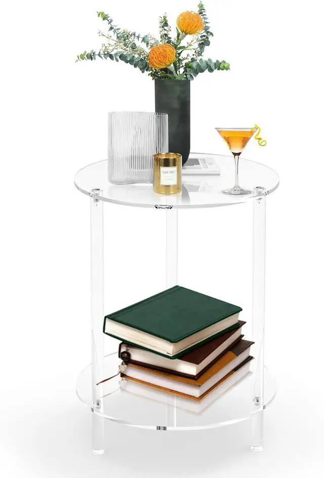 Easy to Place: The acrylic small round side table (Size: 11.8 x20in ) for the consideration of space utilization, optimized design into the upper and lower two structures, very suitable for small Spaces, can help you greatly save space scope, and acrylic material is light, you can easily put it into any small corner.
