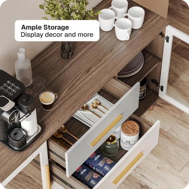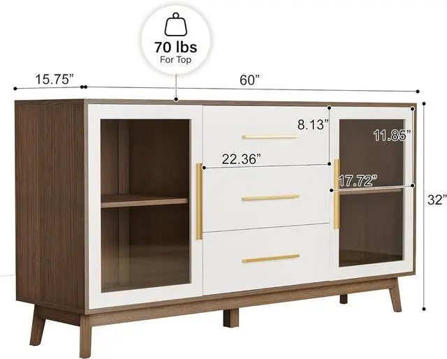 DURABLE CONSTRUCTION: Made with high-quality manufactured wood, this buffet storage cabinet has a weight capacity of up to 70 lbs. Premium materials offer long-lasting durability and reliable performance for many years.