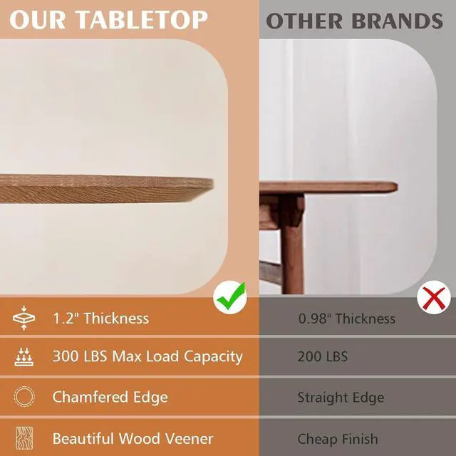 FARMHOUSE STYLE: Designed in the classic farmhouse style, this table creates a relaxed and cozy dining environment. Whether it' s everyday family meals or gatherings with friends, this table serves as the centerpiece for creating cherished memories. Its warm tones and rustic design make your dining area feel more like home, perfect for those who appreciate country charm and a welcoming atmosphere.