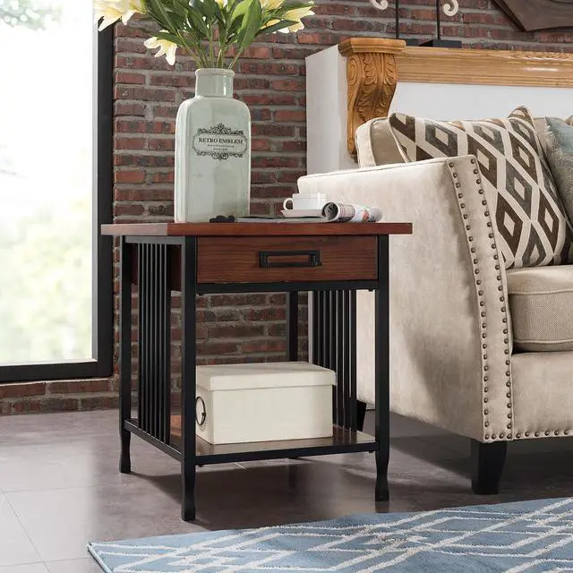 Functional Storage: This end table features a full-extension drawer with ball-bearing roller guides and a solid wood drawer box, ensuring smooth operation and ample storage for small essentials The lower display shelf adds space for décor or books