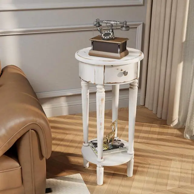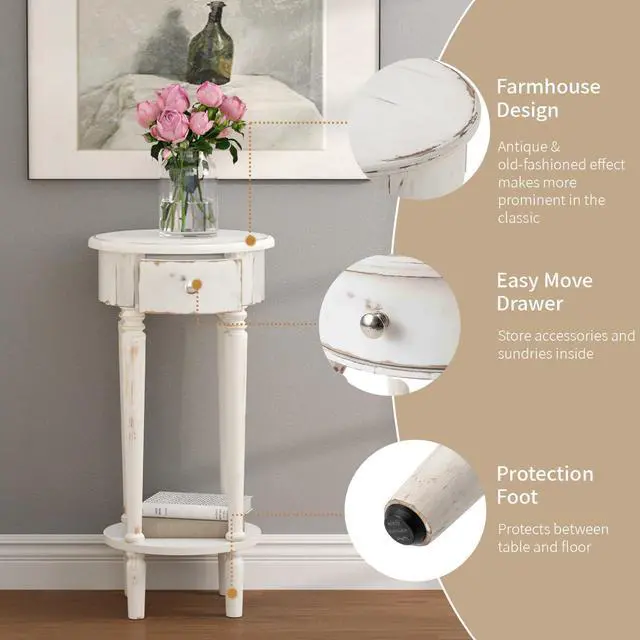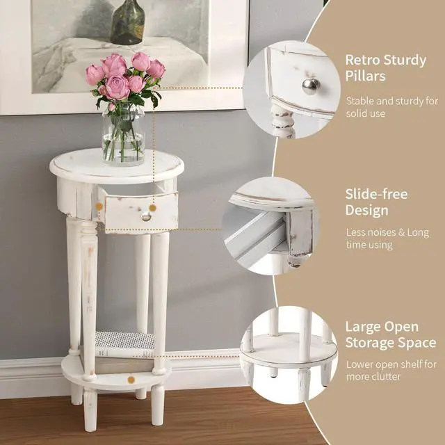 [Multipurpose]The retro-white color and wood quality matches your room furniture perfectly. Perfect height to use as a side table next to the sofa or a nightstand sit bedside. The lightweight design of the side table could be moved to anywhere easily. Protective feet under the four table legs perfectly protect your floor and table.