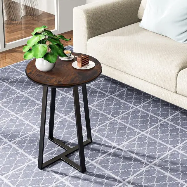 Versatil Use: This portable small round table can be used as a functional side table alongside your chair, sofa, couch or bed, or as a displaying end table for carefully selected decorations in your office. The modern design of this round vintage brown table will greatly lighten the whole room!