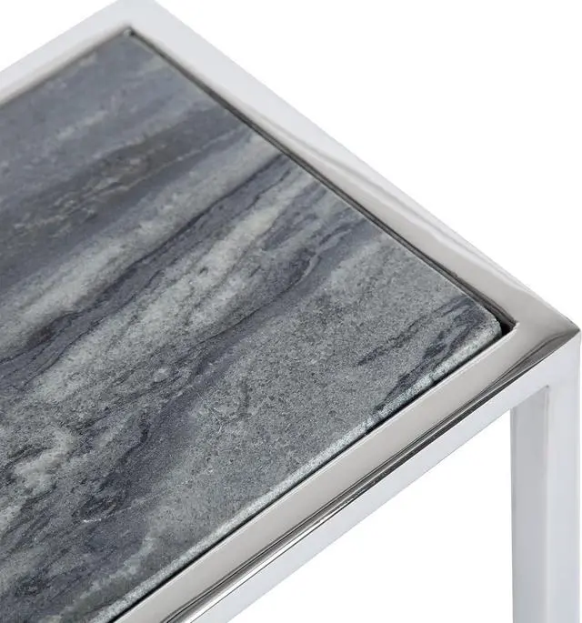 GLAMOROUS LOOK: This one-of-a-kind cocktail table is the perfect decor piece for the glamour goddess, featuring a dazzling silver finish on the frame with an authentic gray marble tabletop