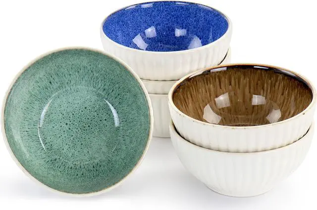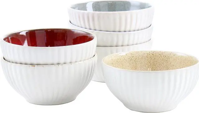 The Laurie Gates Sierra 6 Piece 6.3 Inch Stoneware Bowl Set brings home natural appeal in a large array of deigns. Each dinnerware piece features a unique reactive glaze in six assorted colors. The satisfying embossed stoneware body is made to be durable and easy to hold. Every bowl is dishwasher safe for easy cleaning and microwave safe for fast reheating. Enjoy stylish settings as you eat soups, cereals, and decadent desserts.
