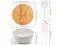 The bamboo lid of the large salad bowl can be used as chopping boad for salad ingredients.