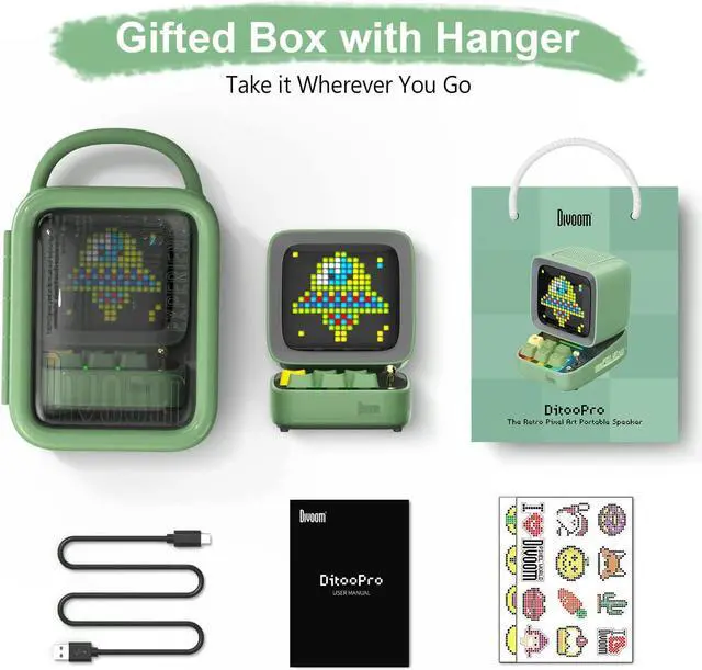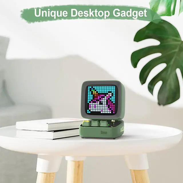 Awesome Gadget - Super cool retro computer style,the16 X16 screen display is bright and vibrant!Recommend this cute device for anyone looking for an awesome gadget for your desk or bedroom! Design - It looks like a retro computer, with a curved screen similar to an old CRT TV, and a classic design. The small keyboard is mechanical, and the joystick is reminiscent again of old school arcade.Divoom Smartphone app - The smartphone app adds so much more functionality to the speaker, and includes library of pixel art created by active community. allows you to get creative pixel art with relative ease, or, select one of the thousands of art pieces or animations that already exist.