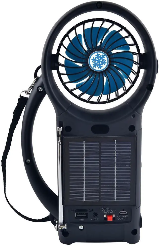 Supersonic SC-1073ERF Solar Power Bluetooth Speaker with FM Radio, LED Torch Light and Fan USB/SD Input, FM Radio, 3 Wind Speed, for Picnic, Barbecue, Camping, Hurricane Emergency