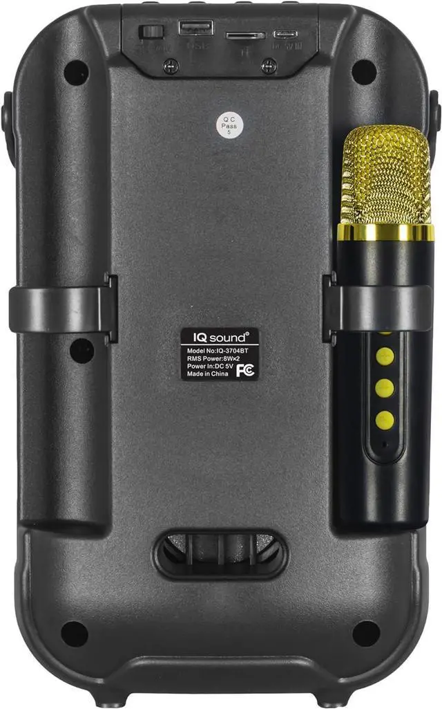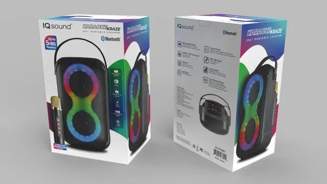 Elevate your gatherings with the IQ Sound IQ-3704BT Karaoke Kraze Portable Bluetooth Speaker. Designed for versatility, this speaker is perfect for parties, seminars, and home entertainment. With Bluetooth 5.0, USB, Micro SD, and FM radio capabilities, you can enjoy your favorite music from various sources.