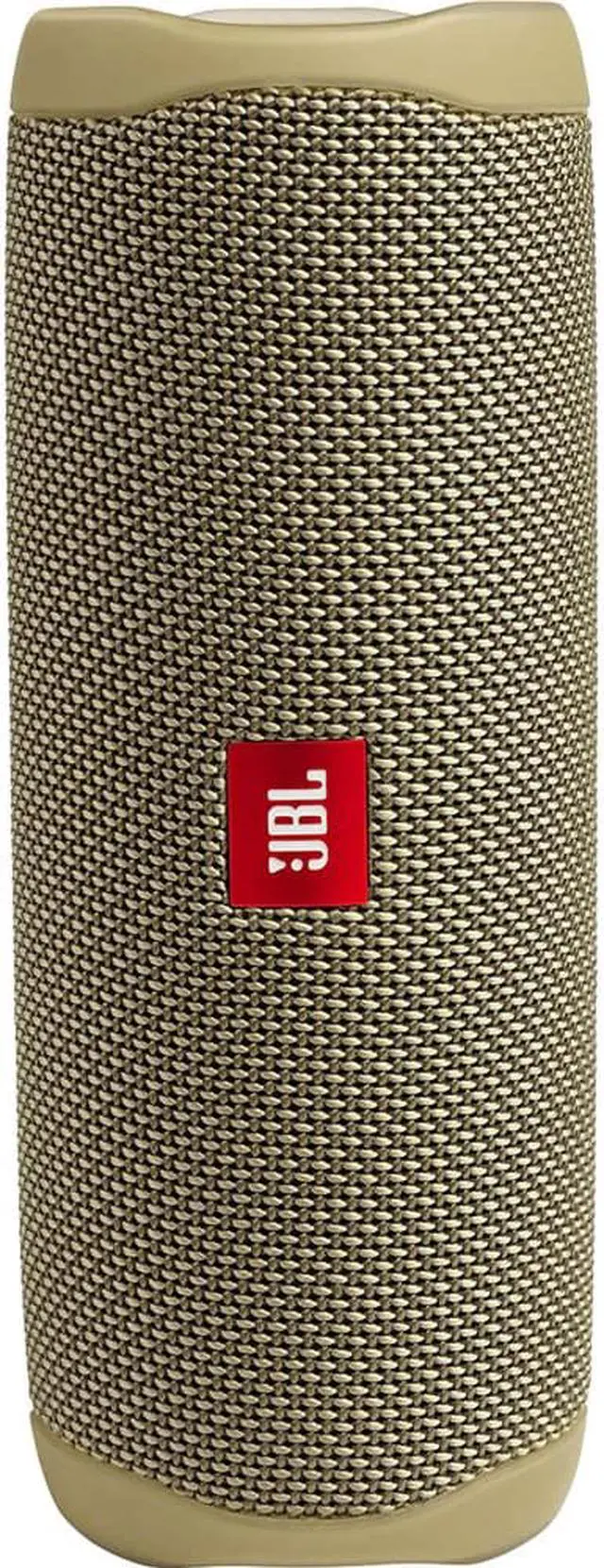 Flip 5s all new racetrack-shaped driver delivers high output with booming bass all in a compact package. Make a splash with IPX7 waterproof design up to three-feet deep for fearless outdoor entertainment and bring your speakers anywhere pool, party, and perfect for sudden cloudburst. Its durable fabric Material and rugged rubber housing keep the Flip 5 safe while you let loose in the great outdoors.
