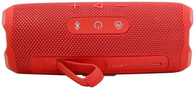 JBL Flip 7 Portable Waterproof Bluetooth Speaker (Red)The party starts whenever you arrived with the Flip 7 Portable Waterproof Bluetooth Speaker from JBL. The speaker's size and waterproof design makes it a great choice for the bedroom, backyard, or beach. The newly updated Flip now offers sound that's bigger and lasts longer. JBL's AI Sound Boost technology analyzes your music in real-time to deliver the best performance possible, and can now output up to 35W of sound. On a full charge, the Flip 7 can last for 14 hours, but Playtime Boost can be activated to squeeze out 2 additional hours if needed. Another new feature is Auracast support, which transmits audio to Auracast-enabled speakers in-range without the need for pairing; letting you add additional speakers for the biggest bashes.