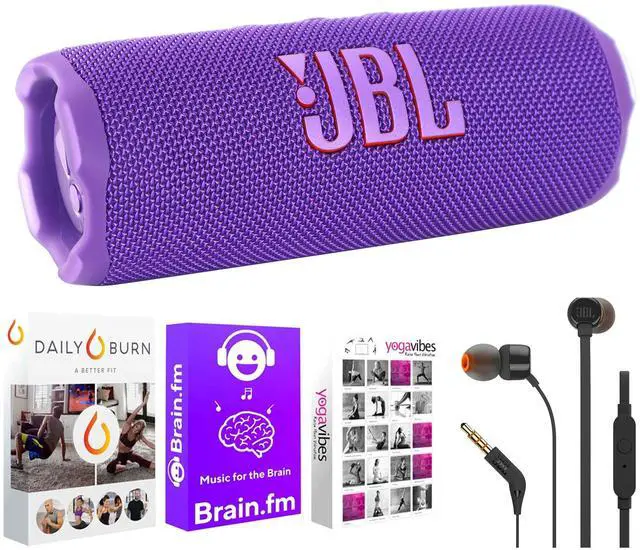 JBL FLIP 7 PORTABLE WATERPROOF BLUETOOTH WIRELESS SPEAKER (PURPLE) + JBL T110 IN EAR HEADPHONES + FITNESS AND WELLNESS PLUS SOFTWARE SUITE
