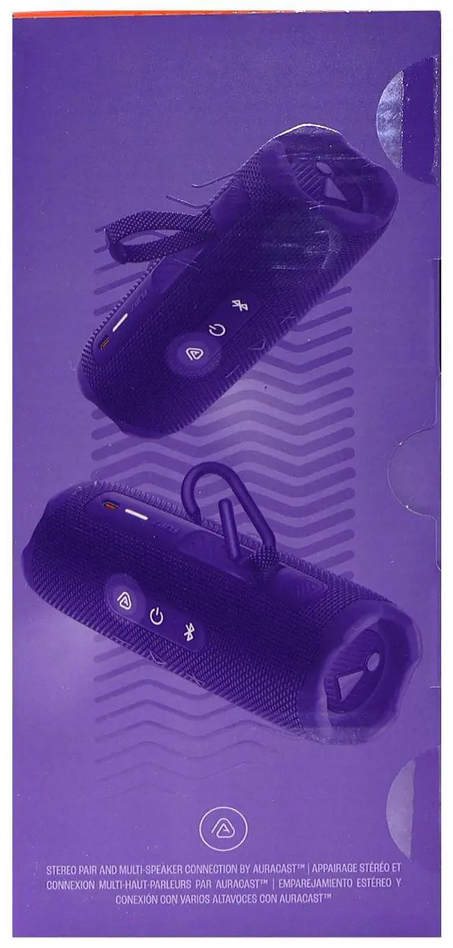 Flip 7 supports Auracast technology to make sharing music super simple. Auracast is a Bluetooth feature that broadcasts audio to an unlimited number of JBL Auracast-enabled speakers that are in range; all without the typical chore of pairing the speakers together. Enjoy true stereo sound with a second Flip 7 or keep adding more compatible speakers for the largest parties.