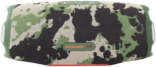 JBL Charge 6 Portable Bluetooth Speaker (Camoflauge)For effortless mobile sound that can easily be carried with you, get a hold of this Charge 6 Portable Bluetooth Speaker from JBL. With a water- and dustproof design, you can feel comfortable taking the Charge 6 outside near the backyard pool or at the beach. Your streaming music sounds better than ever with up to 45W of audio out that's enhanced by JBL AI Sound Boost. With Auracast support, you can easily share your favorite playlists with other compatible speakers without the hassle of Bluetooth pairing. Whatever you listen to can be enjoyed all day long with up to 24 hours of battery life per charge. It holds so much power that you can recharge your mobile device as you listen, using the Charge 6 as a power bank.