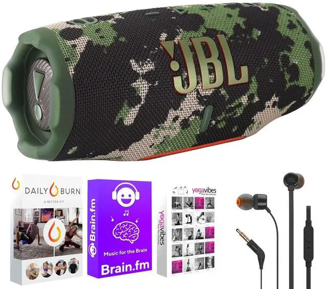 JBL CHARGE 6 PORTABLE BLUETOOTH WIRELESS SPEAKER (CAMOFLAUGE) + FITNESS AND WELLNESS PLUS SOFTWARE SUITE + JBL T110 IN EAR HEADPHONES