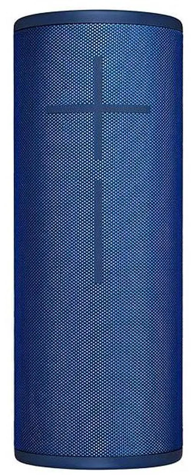 The Ultimate Ears Megaboom 3 Portable Wireless Bluetooth Speaker is a rugged, high-performance speaker designed for immersive 360-degree sound with deep bass and clear audio, featuring an IP67 rating that makes it fully waterproof, dustproof, and even able to float on water, making it ideal for outdoor use; it offers up to 20 hours of battery life on a single charge, supports multiple device connections via Bluetooth for easy switching between users, includes a durable two-tone fabric exterior built to withstand drops and rough handling, and comes in a stylish blue finish with intuitive one-touch controls for seamless music playback and volume adjustment.