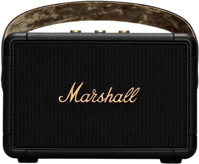 Get on the road with Marshall Kilburn II portable speaker. Free from the confines of wires and cords, this Bluetooth speaker offers 20+ hours of portable playtime on a single charge. This stout-hearted Hero weighs only 6 lbs. And is the loudest speaker in its class. It produces a clear midrange, deep base and extended highs that are unrivaled for a speaker This size, and its multi-directional sound will immerse you in your music, indoor or out. Echoing the legacy of rock "n" Roll, Kilburn II has a solid metal grille that Pats homage to the steel mesh grille found on many microphones and a guitar inspired carrying strap for easy portability.