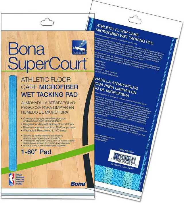 Bona AX0003499 Supercourt Athletic Floor Care Microfiber Wet Tacking Pad, 60 Inch , Light/Dark Blue