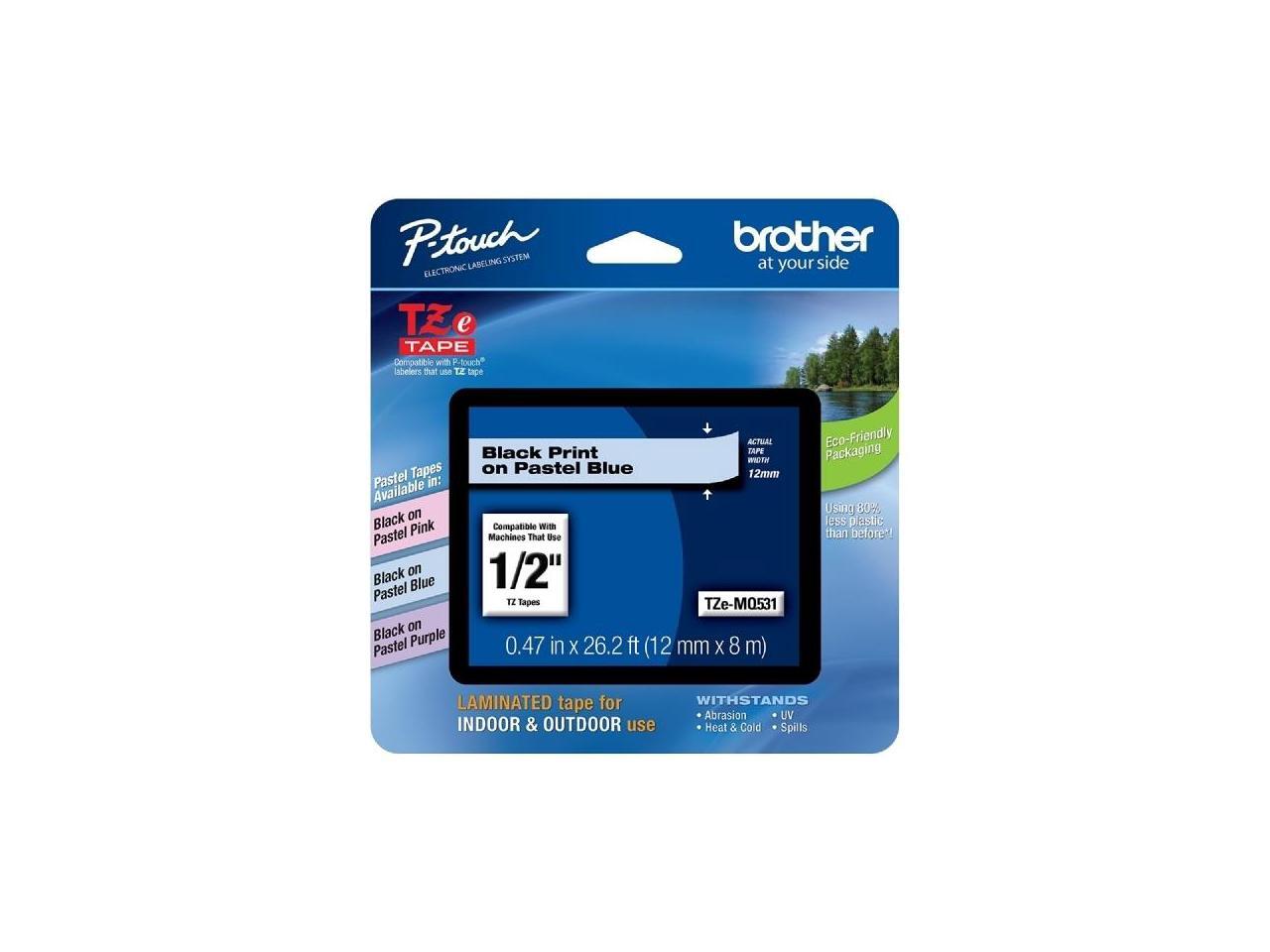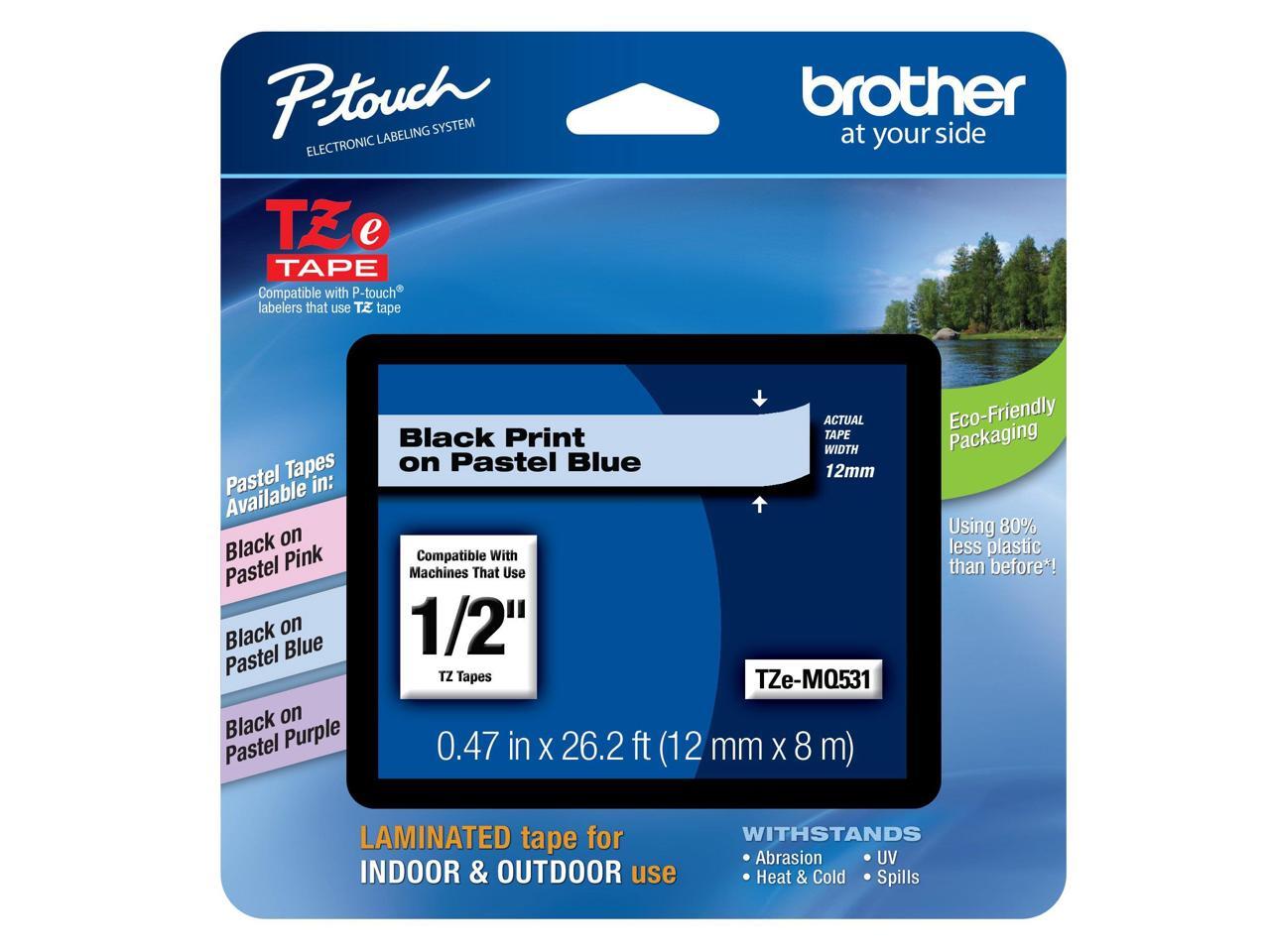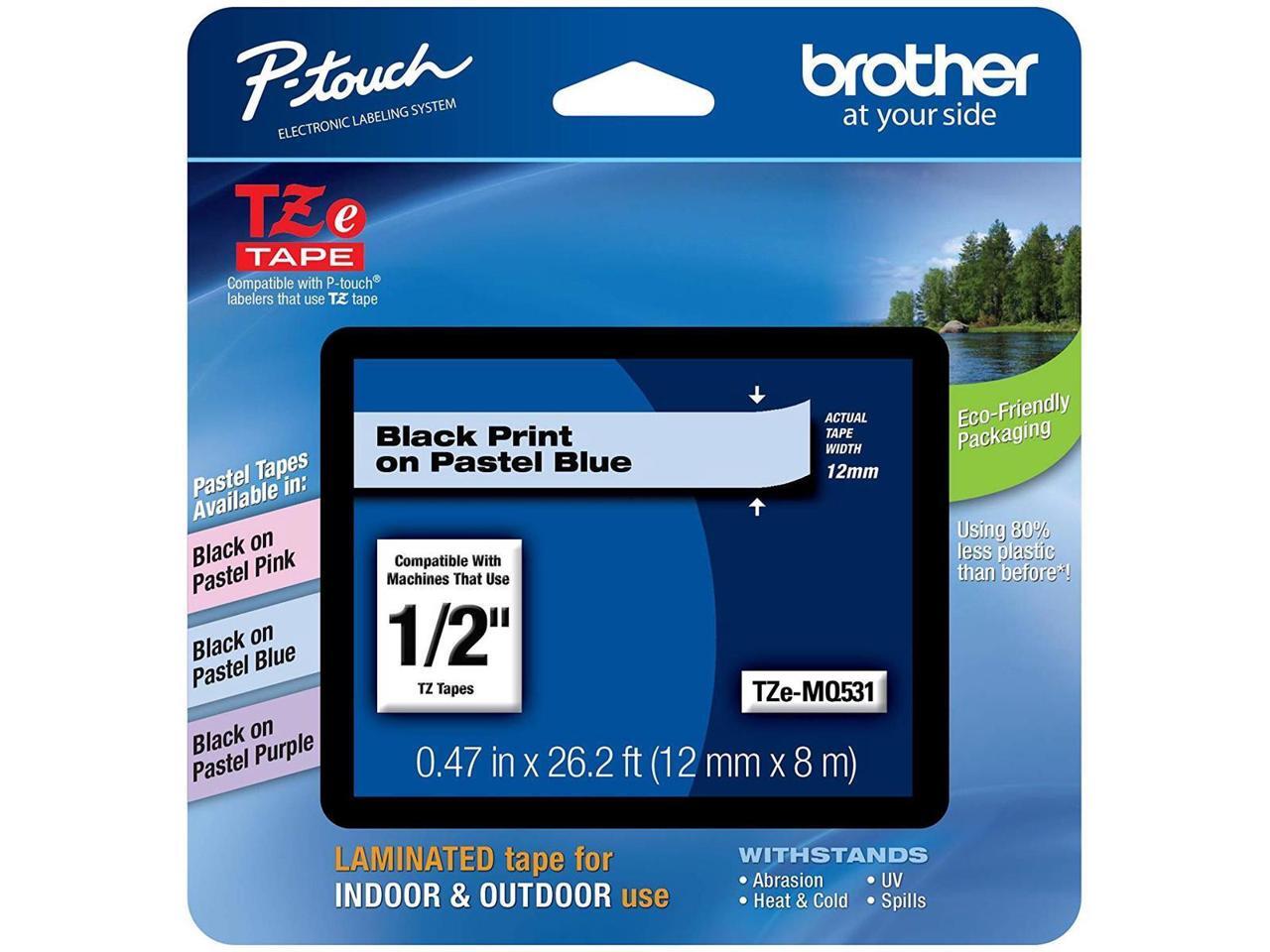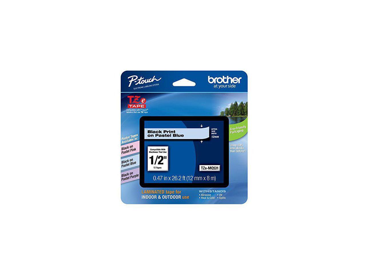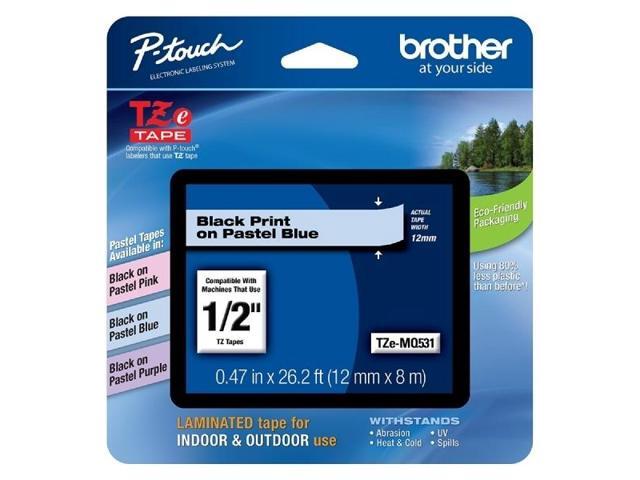 Brother TZEMQ531 Tz Standard Adhesive Laminated Labeling Tape, 1/2 Inch W, Pastel Blue