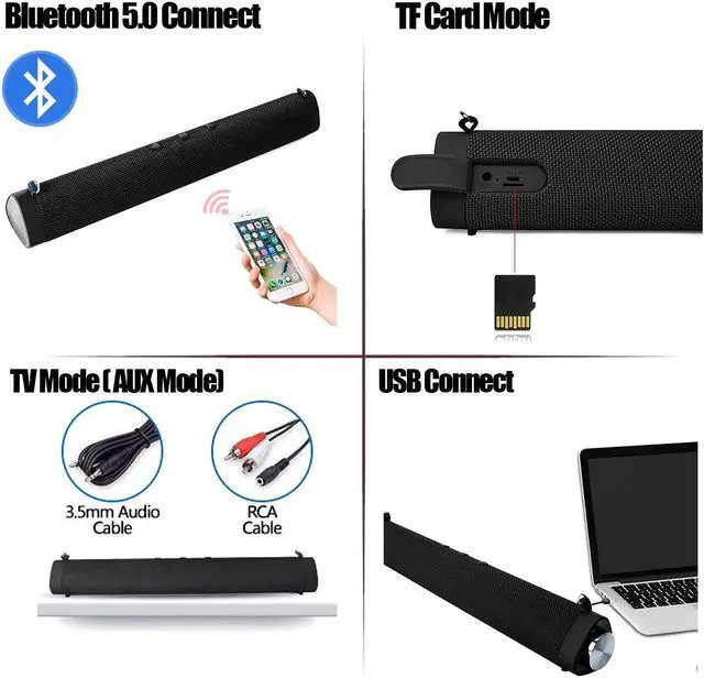 4 Modes Connect: TV Mode,TF Card Mode, Bluetooth 5.0 Mode, USB Mode(PC Mode)