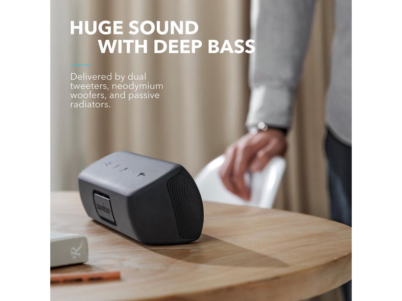 - Huge sound with intense bass: packed with two Ultra high-frequency tweeters, neodymium woofers, and passive radiators to fill every corner of your room with 30W of rich sound. Low frequencies are enhanced in real-time by our exclusive bassuptm technology.