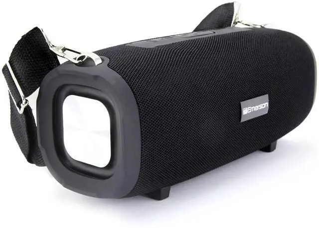 Pump up the party wherever you go with the Emerson Portable Bluetooth Speaker with Carrying Strap! Wirelessly stream all your favorite entertainment content from Bluetooth-enabled devices in high-quality audio. Party like never before!