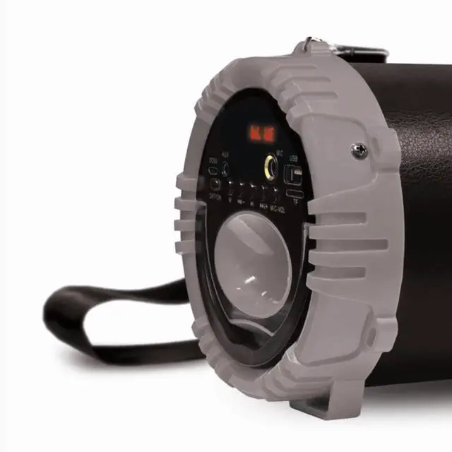 The Portable Bluetooth Speaker with Carrying Strap by Emerson takes the party to the next level. You can play music with any Bluetooth-enabled device, or if you want a wired connection you can use the 3.5 mm aux input. A dedicated sub-woofer gives you the deep bass sound you need to give your music extra depth.