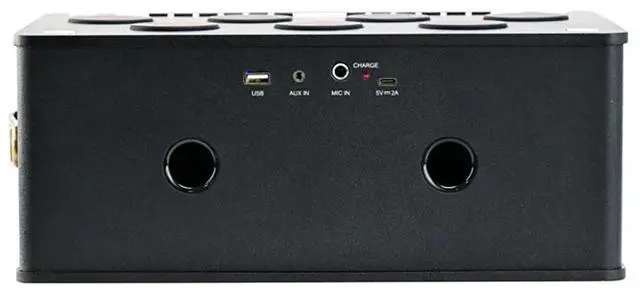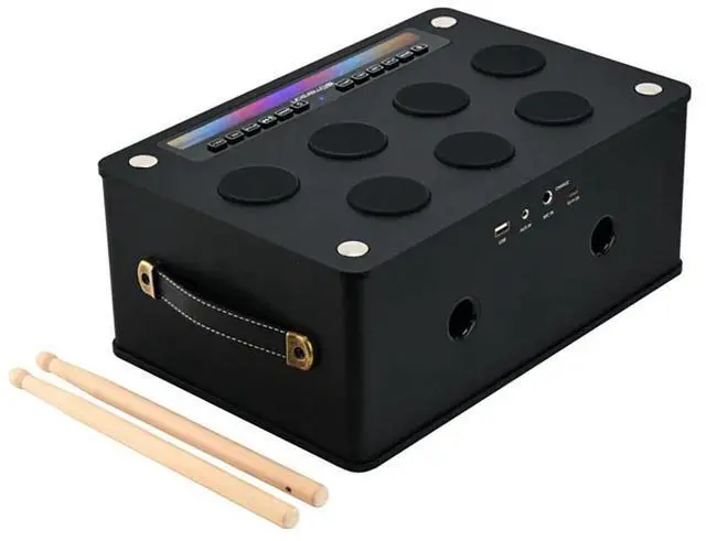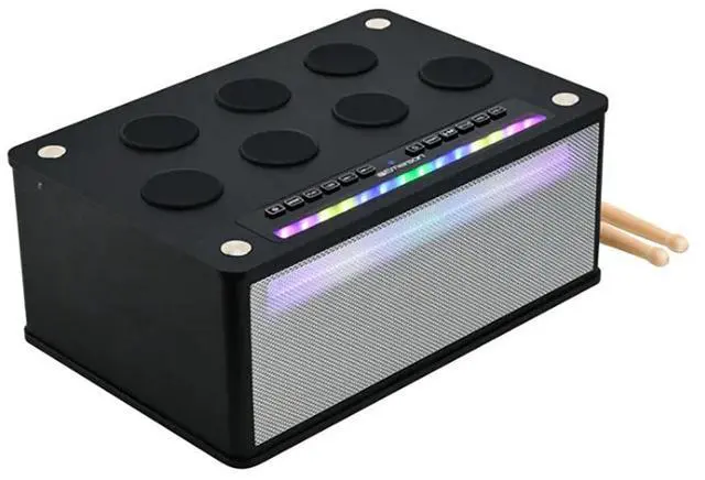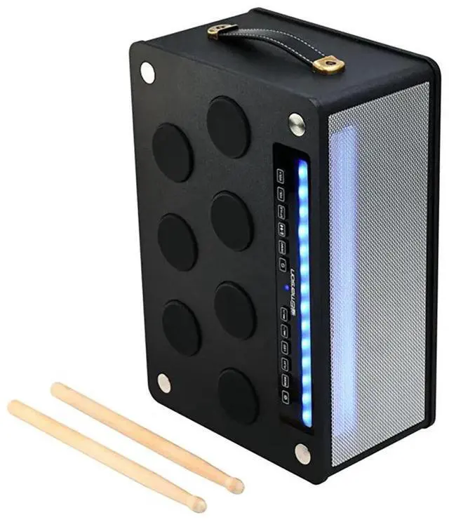 The Bluetooth Speaker with Drum Pads combines music, fun, and portability in one sleek package. Featuring 7 interactive drum pads, you can create your own beats or play along with your favorite tracks. Stream music wirelessly via Bluetooth or connect through USB, AUX, or mic inputs. Built-in multi-color LED lights pulse to the music, adding energy to any environment. Powered by a rechargeable lithium battery, this compact speaker offers high-powered dynamic sound, perfect for parties, karaoke, or on-the-go entertainment. Its lightweight design with a built-in handle makes it easy to take anywhere.