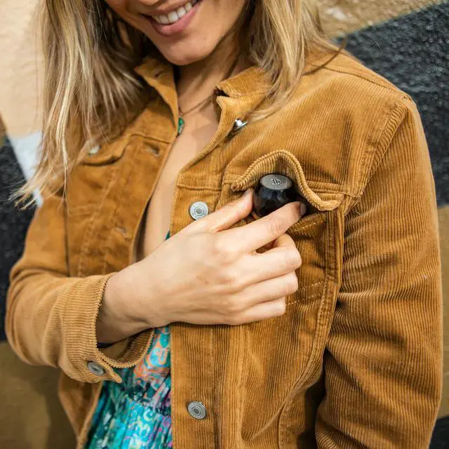 Includes 2 matching U Speakers Micro coin-sized portable wireless Bluetooth speakers with built-in mics & remote selfie buttons.