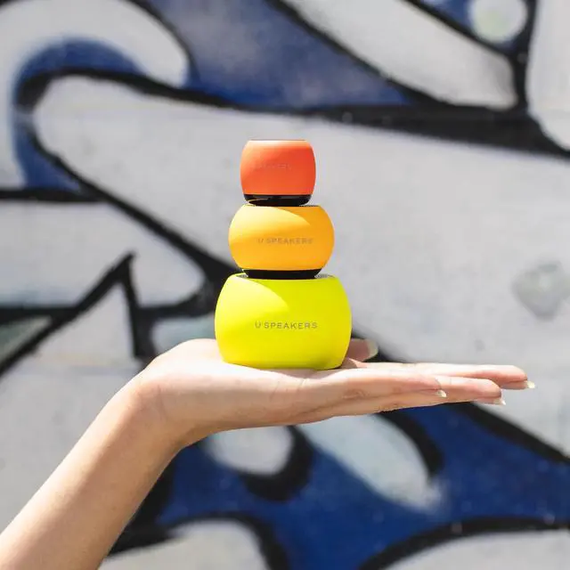 U Speakers Micro is the smallest wireless speaker, weighing 1.3 oz. with a 1.33 in. diameter, while boasting outstanding, sharp stereo sound quality you would not expect.