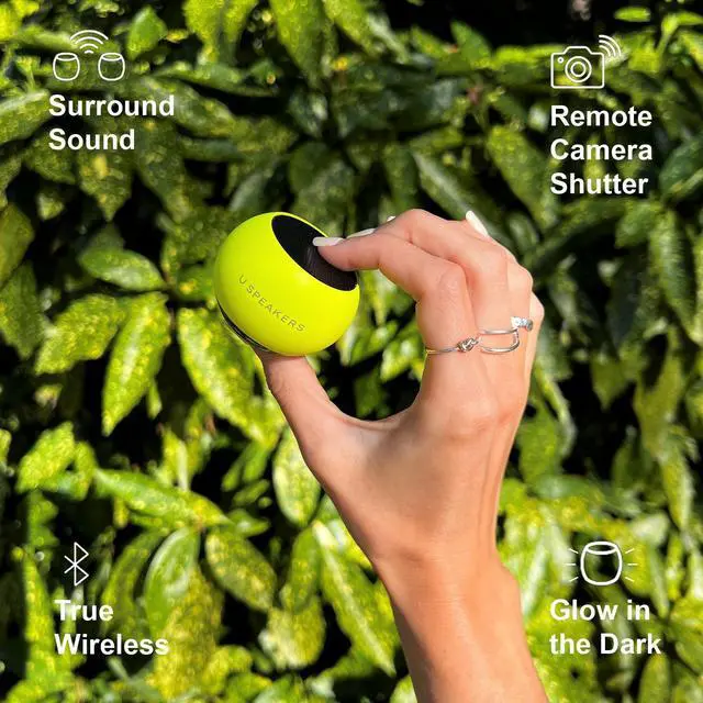 Includes the U Speakers Mini portable wireless Bluetooth 5.0 speaker with a magnetic base, built-in mic & remote selfie button.
