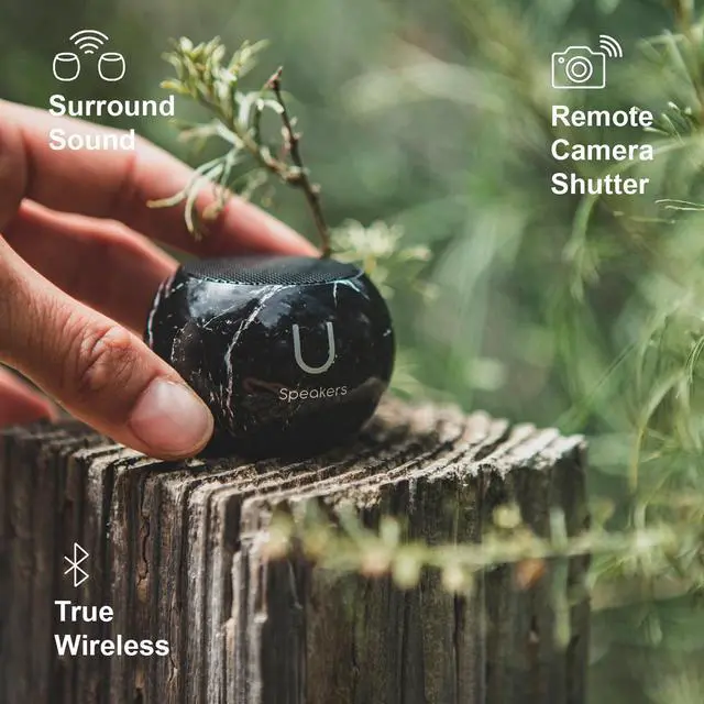 Includes the U Speakers Mini portable wireless Bluetooth 5.0 speaker with a magnetic base, built-in mic & remote selfie button.