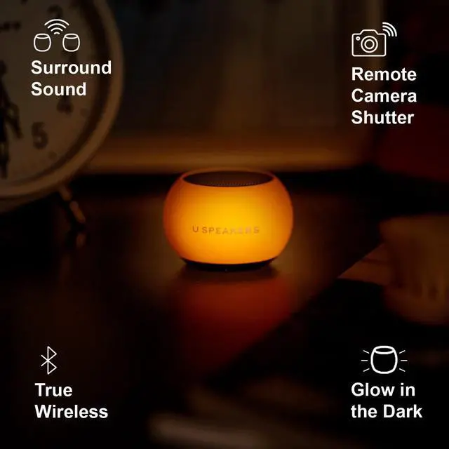 Includes the U Speakers Mini portable wireless Bluetooth 5.0 speaker with a magnetic base, built-in mic & remote selfie button.