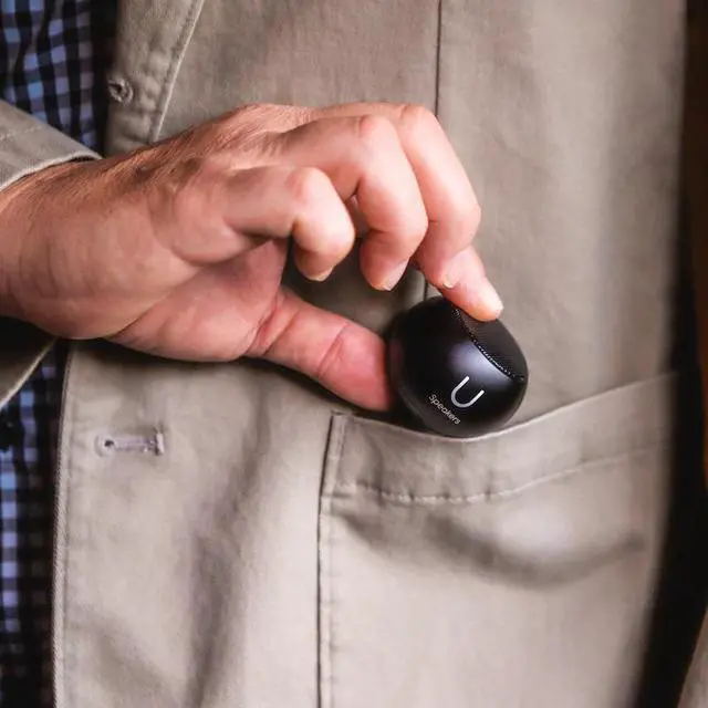 The U Speakers Mini is one of the smallest wireless speakers, weighing 2.46 oz. with a 1.4 in. diameter, while boasting exceptional, clean stereo sound quality you would not expect.