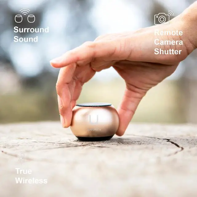 Includes the U Speakers Mini portable wireless Bluetooth 5.0 speaker with a magnetic base, built-in mic & remote selfie button.