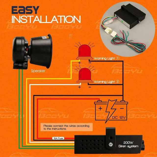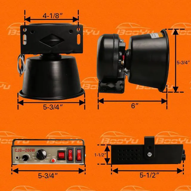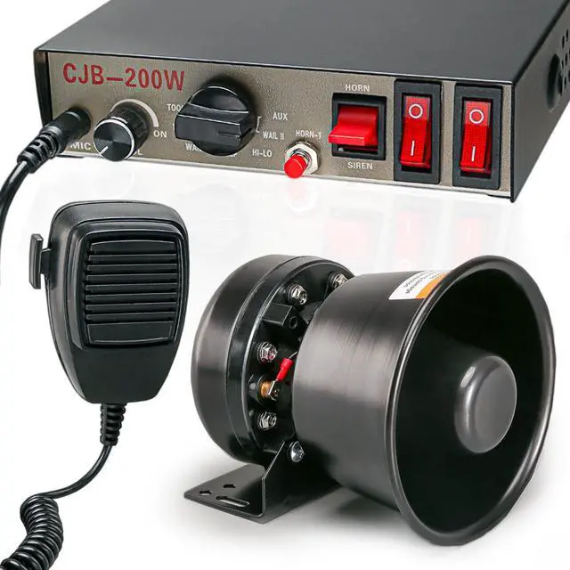![Alt view image 6 of 7 - BooYu 12V 200W 9 Tones Police Warning Emergency Siren PA System [Black Steel Speaker][125-135dB][Handheld Microphone][Hands-Free][2 x 10A Switches] for Firefighter Ambulance Vehicles Truck SUV ATV UTV](https://c1.neweggimages.com/productimage/nb640/C57ZD2602270T5FKC3A.jpg)