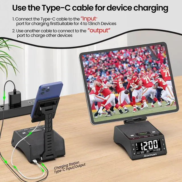 - 1 x Phone Stand with Bluetooth Speaker Alarm Clock